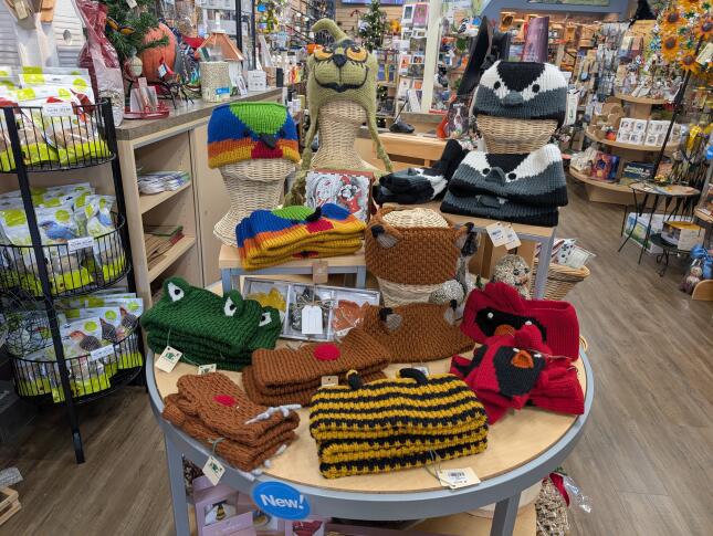We fell in love with these designs when we saw them at our WBU franchise trade show this past summer. The designs are a Painted Bunting, a Chickadee, Frog, Deer, Fox, Cardinal, Bee, and YES that is a GRINCH hat!