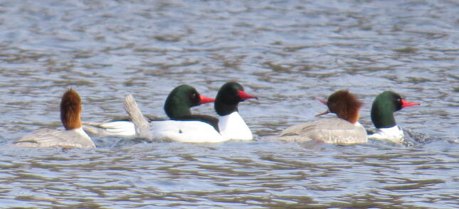 We find Common Mergansers here in the fall and winter months, but any day now they will migrate north to breed in rivers and lakes from upper Maine, Vermont, New Hampshire, Canada, and even Alaska. I’m already seeing fewer mergansers here on the Sudbury River.